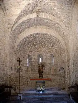 Die Außenwände der Kirche sind durch Pilaster mit aufsitzenden Rundbogenfriesen im lombardisch-katalanischen Stil der Region gestaltet. Der quadratische Turmaufsatz besitzt auf allen Seiten gekuppelte Klangarkaden. Ungewöhnlich ist das nicht mittig in der Fassade platzierte Portal. Der steinsichtige Innenraum besteht aus einem zweijochigen, kreuzgratgewölbten und mit Gurtbögen versehenen Schiff und einer niedrigeren kalottengewölbten Apsis mit drei kleinen schmucklosen Rundbogenfenstern.