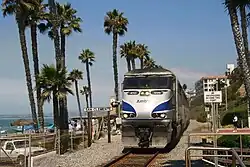 Die Stadt verfügt mit San Clemente North Beach und San Clemente Pier über zwei kleine Haltepunkte, die in beide Fahrtrichtungen gute Verbindungen innerhalb Südkaliforniens ermöglichen. Sie werden regelmäßig von der Orange County Line sowie der Inland Empire–Orange County Line der Metrolink bedient, die hauptsächlich den Vorortverkehr in der Greater Los Angeles Area abwickeln.[34] Darüber hinaus besteht Anschluss an den von Amtrak betriebenen Pacific Surfliner, der auf der Route San Luis Obispo–Los Angeles–San Diego verkehrt.[35]