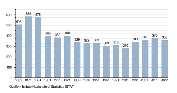 - ↑ Bilancio demografico e popolazione residente per sesso al 31 dicembre 2024. ISTAT. (Bevölkerungsstatistiken des Istituto Nazionale di Statistica, Stand 31. Dezember 2024).