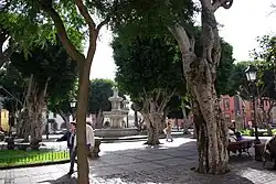 Die Plaza del Adelantado war der wichtigste Platz der Stadt, seit sich Alonso Fernández de Lugo entschloss, seine Residenz hierher zu verlegen. Sie wurde auf dem Grundstück erbaut, auf dem sich heute das Kloster Santa Catalina befindet. Auch die wichtigsten Verwaltungsinstitutionen wurden in der Umgebung eingerichtet. Zu Anfang trug der Platz den Namen San Miguel nach der Kapelle, die gegenüber dem Haus des Adelantado errichtet wurde. Auf diesem Platz fand bis in das 19. Jahrhundert ein großer Teil der öffentlichen Ereignisse statt: Feste, Prozessionen, Stierkämpfe, das Brechen von Zuckerrohr, Vollzug von Strafen usw. Er war auch Marktplatz; an der Ostseite befanden sich Metzgereien. Hier war auch der Endpunkt der Wasserleitung, die die Stadt mit Trinkwasser versorgte. Das Wasser floss durch einen Holzkanal, der aus dem Mercedeswald kam und durch die Calle Nava y Grimón verlief, die daher auch den Namen Calle Agua trug. Diese Wasserleitung bestand bis in das Jahr 1842. Die Form des Platzes war früher nicht so gleichmäßig wie heute. Auch wenn sich seine Ausmaße über die Zeit hinweg erhalten haben, wurde das Aussehen erheblich verändert. Der Platz war ursprünglich nicht gepflastert. Im Jahr 1798 geschah dies zum ersten Mal. Im Jahr 1843 wurde er neu aufgeteilt und mit Bäumen und Bänken versehen. Der zentrale Marmorbrunnen stammt aus Marseille und wurde im Jahr 1870 aufgestellt.