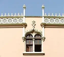 Die Ähnlichkeit zeigt sich an dem Gesamtaufbau, besonders aber bei der Gestaltung des Portals. Es finden sich hier z. B. auch die Säulenpaare auf einer gemeinsamen Basis. Der auffälligste Teil ist der Giebelabschluss mit dem Wappen der Familie Salazar. An der Dachkante befinden sich Wasserspeier mit zoomorphen Formen, die an präkolumbisch-mexikanische Kunst erinnern. Der begrünte Innenhof ist von geschlossenen Galerien umgeben. Auf der Seite, die dem Eingang gegenüberliegt, befindet sich ein Treppenhaus, das durch eine achteckige Decke abgeschlossen wird.