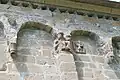Die aus sorgfältig gearbeiteten Hausteinen errichtete Kirche besitzt noch das ursprüngliche Südportal und einen später geschaffenen Zugang im Westen. Die Fassade wird von lombardischen Bögen und Reliefs mit der Darstellung von Figuren und Pflanzenmotiven geschmückt.