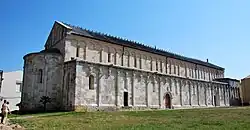San Gavino oder Santu Bainzu 'e portu, wie die Sarden die Basilika am Hafen nennen, ist heute die größte, besterhaltene und bedeutendste pisanische Kirche aus der Zeit, bevor die Baumeister Busketos (Buscheto) und Rainaldo mit der Errichtung des Domes von Pisa jenen farbenprächtigen Stil prägten, der gemeinhin unter „pisanisch“ verstanden wird. Die Anfänge des Bauwerks reichen in die Mitte des 11. Jahrhunderts zurück, da San Gavino bereits in der Zeit des Richters Barison I. von Torres (1063–1065) urkundlich erwähnt wird. Die Inschrift eines Guido de Vada mit der Jahreszahl 1111 auf der Basis einer Lisene ist sicher nach der Fertigstellung der Basilika angebracht worden.