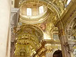 Das Innere der dreischiffigen Basilika, der größten Kirche der Diözese, ist durch zwei Reihen von Säulenpaaren gegliedert, wobei diese genuesischen Vorbildern aus dem frühen 17. Jahrhundert folgen.