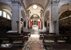 Die Kirche hat den Grundriss eines griechischen Kreuzes, das einem Quadrat eingeschrieben ist. Auch das Presbyterium und die Apsiden sind quadratisch. In der Mitte erhebt sich eine Kuppel. Der Innenraum besticht durch Einfachheit im Sinne der klassischen Renaissance.