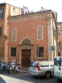 Nach Adinolfi hatte die mittelalterliche Kirche einen basilikalen Innenraum, dem ein kleiner Säulengang vorgelagert war, was darauf schließen lässt, dass das damalige Gebäude viel größer war als das heutige. Die Inschrift auf dem Architrav des Portals erinnert daran, dass die Kirche von Giusto Bonanni aus San Geminiano wiederaufgebaut wurde.[8] Das Datum dieses Wiederaufbaus ist ungewiss, da die Jahreszahl auf dem Türsturz zerstört ist: Man nimmt an, dass es 1590 oder 1599 war, aber der Stil der Fassade lässt auf das Ende des 15. oder den Beginn des 16. Jahrhunderts schließen.