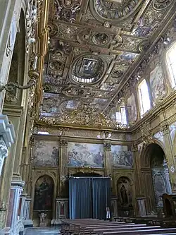 Zwischen 1580 und 1584 entstand die ganz außergewöhnliche Kassettendecke, die mit Gemälden des flämischen Malers Teodoro d’Errico und Schnitzereien verschiedener neapolitanischer Kunsthandwerker dekoriert ist. Zugleich wurden auch einige Seitenkapellen eröffnet: 1582 die Capella di San Giovanni Battista, 1584 die Capella del Crocifisso.[6] 1589 erfolgte die letzte Zahlung an Della Monica, der vermutlich für die bis dahin abgeschlossenen Arbeiten verantwortlich war, während Cavagna erst in Dokumenten von etwa 1595 erwähnt wird, was darauf hinzudeuten scheint, dass er die Arbeiten vielleicht erst in einer zweiten Phase übernommen hat.[6]