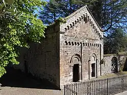 Unter uralten, knorrig-verwachsenen Steineichen und Pappeln liegt San Leonardo, eine romanische Kirche aus dem 12. Jahrhundert. Das fast fensterlose Äußere besteht aus moosbewachsenem, porösem Trachyt, rundum laufen Portalbögen und ein Schmuckfries. Das Innere ist düster, schmucklos und besitzt Bögen sowie eine Holzdecke. Die Kirche wurde später gotisch umgebaut und im 13. Jahrhundert durch ein Klosterhospital des Jerusalem-Ordens der Johanniter ergänzt.