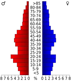 Auf das gesamte County bezogen setzte sich die Bevölkerung zusammen aus 21,70 % Einwohnern unter 18 Jahren, 13,60 % zwischen 18 und 24 Jahren, 27,00 % zwischen 25 und 44 Jahren, 23,30 % zwischen 45 und 64 Jahren und 14,50 % waren 65 Jahre alt oder darüber. Das Durchschnittsalter betrug 37 Jahre. Auf 100 weibliche Personen kamen 105,60 männliche Personen, auf 100 Frauen im Alter ab 18 Jahren kamen statistisch 105,20 Männer.