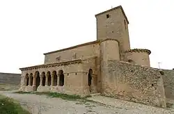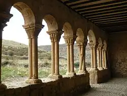 Allein schon durch die exakte Bearbeitung und Vermauerung der Steine unterscheidet sich die Südvorhalle (portico oder galería porticada) vom übrigen Kirchenbau; sie könnte folglich – zusammen mit den stabilisierenden Strebepfeilern – im frühen 12. Jahrhundert hinzugefügt worden sein, was auch durch die Tatsache gestützt wird, dass die Eingänge zur Vorhalle und zur Kirche nicht in einer Flucht liegen. Sieben Arkadenbögen öffnen die Südseite, ein weiterer befindet sich an ihrer Ostseite. Die asymmetrische Anlage der Bögen hat – im Zusammenhang mit dem fehlenden Eingang im Westen und der Schmucklosigkeit der Fassade – zu Spekulationen Anlass gegeben, ob diese nicht in späterer Zeit eingestürzt sein könne – mit der Folge, dass auf der linken Seite zwei Arkadenbögen fehlen. Eine ebensolche Asymmetrie der Südvorhalle findet sich jedoch auch in der etwa 100 Kilometer weiter nördlich gelegenen Kirche von Jaramillo de la Fuente, bei der am originalen Erhaltungszustand nicht zu zweifeln ist.