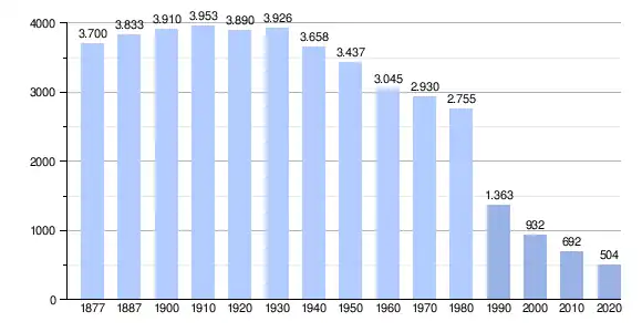 Durch Fortzug in die umliegenden Städte ist die Bevölkerung seit den 1950er Jahren stetig gesunken.