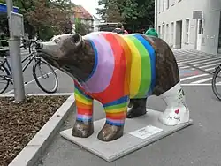 Buddy Bär Oskar, vor dem Haupthaus, gestiftet vom Förderverein Lindenblatt