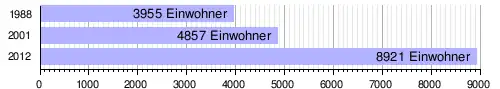 Im Hauptort lebten bei der Volkszählung 2012 8921 Einwohner in 1217 Haushalten,[2] bei der Volkszählung 2001 4857 in 644 Haushalten[11] und bei der Volkszählung 1988 3955 in 528 Haushalten.[12]