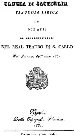 - ↑ 4. November 1832: „Sancia di Castiglia“. In: L’Almanacco di Gherardo Casaglia, abgerufen am 1. August 2019.