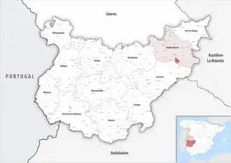 | Koordinaten: | 38° 56′ N, 5° 9′ W | ||