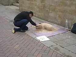 In Touristengebieten die am Meer liegen haben sich Sandskulpturen als eine Art der Straßenkunst etabliert. Die einfache Verfügbarkeit des Sandes als Baumittel und des Salzwassers als Bindemittel einerseits, und die große Zahl an potenziellen Spendern macht solche Orte für die Straßenkunst interessant. Der Einsatz von Salzwasser ist dabei notwendig, da die Skulpturen ohne die Verdichtung in Holzrahmen beim Trocknen zerfielen. In Spanien ist vor allem die Stadt Benidorm bekannt für die Sandskulpturenstraßenkunst. Aber auch in anderen Städten Spaniens und an der französischen Mittelmeerküste sind immer wieder Skulpturen von Straßenkünstlern zu finden.