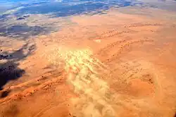 Bei einem Sandsturm handelt es sich um einen sehr trockenen und heißen Wind, der in Trockengebieten große Mengen Sand zunächst hoch aufwirbelt und anschließend mitführt. Einige Stürme transportieren bis zu 100 Millionen Tonnen Sand über zum Teil sehr große Entfernungen. Die Entfernung, die der Sand hierbei zurücklegt, hängt von der Größe der einzelnen Sandpartikel ab. Die größten Partikel bilden an windgeschützten Stellen langsame Dünen.[1] Es wird geschätzt, dass im Jahr 2004 durch Sandstürme insgesamt etwa 2–3 Milliarden Tonnen Sand bewegt wurden.[2][3]