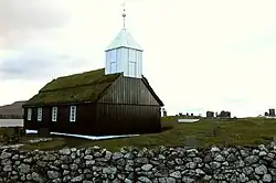 Frühere Ausgrabungen haben an diesem Ort eine Stabkirche aus dem 11. Jahrhundert zutage gefördert. An derselben Stelle befindet sich heute der Sakralbau von 1839, eine typisch färöische Holzkirche mit Grasdach. 1988 wurde sie Opfer eines verheerenden Brandes, bei dem das ganze Kirchensilber schmolz. Es erwies sich als Brandstiftung. Doch im darauf folgenden Jahr wurde sie wiederhergestellt, pünktlich zum 150. Jubiläum.