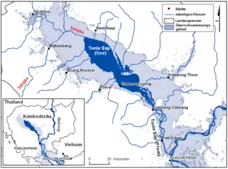 - ↑ State of water environmental issues. Cambodia. ( des vom 2. Dezember 2010 im Internet Archive) Info: Der Archivlink wurde automatisch eingesetzt und noch nicht geprüft. Bitte prüfe Original- und Archivlink gemäß Anleitung und entferne dann diesen Hinweis. Water Environment Partnership in Asia (WEPA), Ministry of the Environment of Japan.