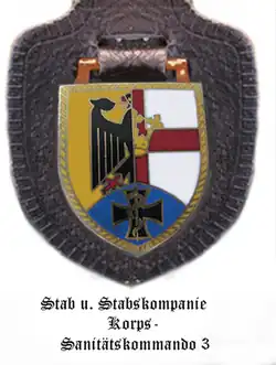 Das Sanitätskommando führte aufgrund seiner Ausplanung als Teil der unselbständigen Korpstruppen kein eigenes Verbandsabzeichen. Die Soldaten trugen daher das Verbandsabzeichen des übergeordneten Korps.