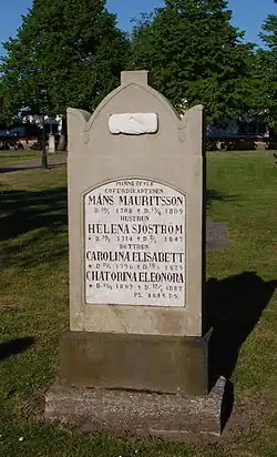 Die Kirche ist von einem Friedhof umgeben. Auf diesem befindet sich südlich der Kirche der ungewöhnliche Grabstein von Måns Mauritsson und Helene Sjöström sowie den Töchtern Carolina Elisabett und Chatorina Eleonora. Bemerkenswert ist das hohe Alter von Helene Sjöström, die danach von 1714 bis 1847 lebte und somit im Alter von mehr als 130 Jahren verstorben wäre. Bei Geburt der Töchter wäre sie 81 bzw. 94 Jahre alt gewesen. Måns Mauritsson (1708–1809) kam nach der Grabsteininschrift auf bescheidenere 101 Lebensjahre.