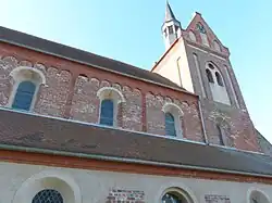 Zunächst entstanden der Chor der Kirche, die zurückspringende Apsis und ein erstes kurzes Stück des Langhauses. Eine Baufuge deutet auf eine Unterbrechung der Bautätigkeit hin. An der nördlichen und südlichen Chorwand befinden sich die Fläche gliedernde Lisenen. Im unteren Bereich sind schmale, oben breitere Lisenen angeordnet. Vermutlich war ursprünglich die Fortsetzung dieser Gliederung nach Westen vorgesehen. Nach der Unterbrechung der Bautätigkeit wurde dieses Gestaltungselement nicht fortgesetzt. Bei der Restaurierung im späten 19. Jahrhundert wurden allerdings die „fehlenden“ Lisenen ergänzt. Aufgrund der Oberflächen des Backsteinmauerwerks wird angenommen, dass ursprünglich eine Verputzung geplant war, die möglicherweise in Form von Werkstein imitierendem Quaderputz erfolgen sollte. An der Nordseite des Chors befindet sich ein kleines Portal. Der Dachstuhl der Kirche konnte dendrochronologisch auf das Jahr 1172 für den Chor[2] und 1185 für das Langhaus datiert werden.