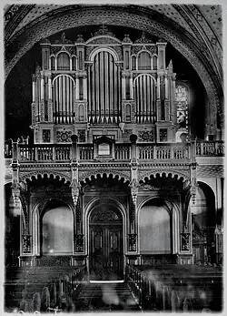 - ↑ Disposition auf walcker.com (Die Register Nr. 2–4 sind dort versehentlich als 8′ statt 16′ bezeichnet, im I. Manual ist Corno 4′ vergessen, im Pedal ist die Doppelung Prinzipalbaß 16′ und Octavbaß 16′ ein offenkundiges Versehen)