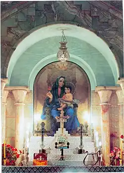 Wie bei anderen armenischen Kirchen befindet sich der halbrunde Altar an der Ostseite. An beiden Seiten des Altars befinden sich Andachtsräume mit Seiteneingängen. Die Wände über dem Altar und an seinen beiden Seiten sind mit Wandmalereien versehen, die Bibelmotive zeigen: die Heilige Maria mit Jesus, Christi Himmelfahrt, Johannes der Täufer bei der Taufe Christi sowie die Kreuzigung Jesu.[1][2]
