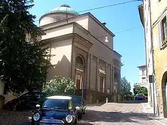 Bereits 1829 wurde der Architekt Giacomo Romilli mit dem Entwurf der kompletten Erneuerung beauftragt. Ein ähnliches Projekt wurde auch von einem Ingenieur für die Kirche San Michele al Pozzo Bianco ausgearbeitet, aber glücklicherweise nicht ausgeführt. Das Projekt von Giacomo Romilli umfasste ein klassizistisches Gebäude mit einer von Pilastern und einem Tympanon geprägten Fassade, einer kleinen halbkugelförmigen Kuppel und einem hohen Glockenturm. Aus derzeit nicht bekannten Gründen wurde dieses Projekt nicht ausgeführt. Die ersten Kontakte zwischen der Kirchenverwaltung unter der Leitung des Grafen Guglielmo Lochis, Sammler und Vorsteher der Stadt Bergamo, und dem jungen Architekten Ferdinando Crivelli, beide unweit der Kirche ansässig, gehen auf das Jahr 1837 zurück. Crivelli hat mehrere Pläne ausgearbeitet: das erste 1838, das zweite 1840. Erst ein dritter wurde tatsächlich zwischen 1840, als mit dem Abriss der alten Kirche begonnen wurde, und 1847, als die Kirche am 28. November von Bischof Carlo Gritti Morlacchi geweiht wurde, ausgeführt. Crivelli ließ sich im Wesentlichen von einem Projekt inspirieren, das der berühmte Architekt Giacomo Quarenghi aus Bergamo 1798 für die Kapelle der Malteserritter im Voroncov-Palast in Sankt Petersburg konzipiert und realisiert hatte. Ein Element der Originalität ist die Kuppel, die nicht im Quarenghi-Gebäude zu finden ist und die Crivelli in Anlehnung an das Pantheon entworfen hat.
