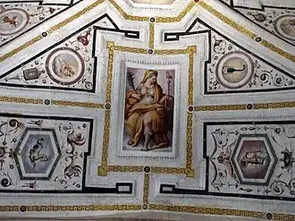 Nach der Cappella dell’Assunta führt der Gang weiter zu den Sakristeien. Links befindet sich die berühmte Sakristei des Vasari, die auch als Alte Sakristei (sacrestia Vecchia) bekannt ist. Es handelt sich in Wahrheit um das ehemalige Refektorium des Olivetanerklosters, das 1544–1545 durch Giorgio Vasari und Gehilfen dekoriert wurde,[1] darunter Raffaellino del Colle. Die Deckengewölbe wurden nach der damals allerneuesten römischen Mode des frühen Manierismus gestaltet, mit Fresken von Allegorien (u. a. Tugenden) in den großen Bilderrahmen und dazwischen ein luftiger und eleganter Groteskendekor.[1] Die Decke ist in drei Quadranten unterteilt, die den Themen Glaube, Religion und Ewigkeit gewidmet sind.[4][7] Das Ganze gilt als eines der Hauptwerke von Vasari (siehe unten Galerie).