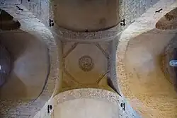 Das kurze tonnengewölbte Langhaus ist einschiffig und hat etwa dieselbe Breite (ca. 3,20 Meter) wie die Mittelapsis; die kleineren seitlichen Apsiden sind östlich an die beiden Querhausarme angefügt, die gegenüber dem Langhaus um eine Stufe erhöht sind. Die drei Apsiden bilden ein Triumphbogenschema. Das Kirchenschiff und die beiden Querhausarme sind durch schmale, hochgelegene und ursprünglich nicht verglaste Fensteröffnungen nur spärlich belichtet; sie sind tonnengewölbt (Scheitelhöhe ca. 7,50 Meter). Die Vierung ist hingegen von einer trompengestützten Kuppel überdeckt und die Apsiden zeigen die üblichen halbkuppelförmigen Kalottenwölbungen.