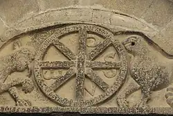 An der Westfassade der Kirche öffnet sich das Hauptportal. Ein weiteres Portal, das wahrscheinlich als Zugang zum nicht mehr erhaltenen Kreuzgang diente, befindet sich an der Südseite. Es wird von einer Archivolte mit Röllchenfries überfangen und besitzt ein Tympanon, auf dem ein sechsspeichiges Rad mit sechs Blütenknospen dargestellt ist.