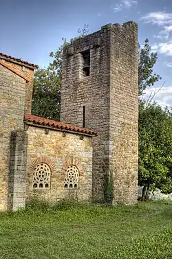 Ungefähr einen Meter von der westlichen Vorhalle entfernt, auf der Südseite der Kirche, stehen die Reste eines rechtwinkligen, freistehenden Turmes. Falls er als Glockenturm der Kirche im frühen 9. Jahrhundert entstanden ist – wie man vermutet – gehört er zu den ältesten Glockentürmen der iberischen Halbinsel.