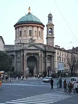 Die neue Kirche wurde zwischen 1857 und 1875 nach einem Projekt des Architekten Antonio Preda erbaut, dem es gelang, ein wichtiges Gebäude zu schaffen, das sich gut in die neue architektonische Situation einfügt. Die in der Kirche vorhandenen Kunstwerke wurden gerettet, aber nicht alle wurden in die neue verlegt, das Polyptychon von Vincenzo Foppa befindet sich in der Pinacoteca di Brera.