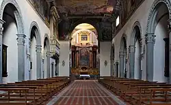 Die hl. Maria-Magdalena von Pazzi gehörte dem 1257 gegründeten Konvent Santa Maria Maddalena la Penitente an. 1442 wurde die Anlage den Zisterziensern übereignet. Die Kirche wurde 1480–1500 nach Plänen von Giuliano da Sangallo erweitert. Derselbe Architekt baute das Atrium mit ionischen Säulen, das unter Kunsthistorikern als ein bedeutendes Beispiel einer Symbiose des Bautypus eines Klostergevierts mit den Architekturformen der Antike gilt.