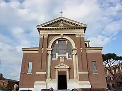 Die Kirche befindet sich leicht erhöht auf dem einzigen Hügel von Lido di Ostaia am Piazza Regina Pacis.