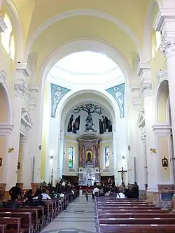 Der Grundriss ist ein lateinisches Kreuz mit einer achteckigen Kuppel (Höhe 42 Meter) in der Kreuzung.