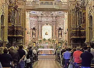 Der Altar wurde 1742 von Karl III. von Bourbon gestiftet, das Altarbild von Falciati zeigt die „Madonna mit den Heiligen Sebastian, Karl und Amalia“.[16]