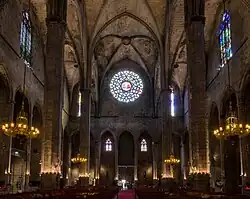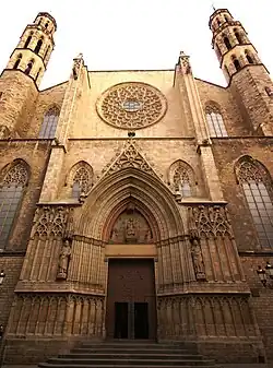 Santa Maria del Mar ist eine gotische Kirche in Barcelona, Spanien. Sie befindet sich im Distrikt La Ribera und wurde zwischen 1329 und 1383 erbaut, also zur Blütezeit der katalanischen Vorherrschaft im Handel und zur See. Sie ist ein herausragendes Beispiel katalanischer Gotik, mit einer Reinheit und Einheitlichkeit des Stils, die für große mittelalterliche Gebäude sonst unüblich ist.[1]