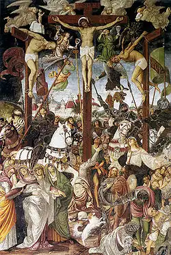 Selbst die Anordnung der Szenen – angefangen bei der großartigen Kreuzigung – scheinen die Pläne zu den dekorativen Apparaten der oberhalb der Felswand von Varallo zu errichtenden Kapellen vorwegzunehmen.