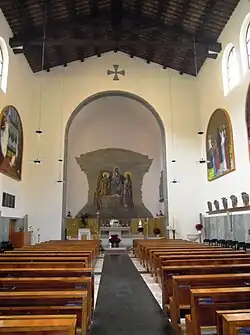 Im Inneren ist ein breites Kirchenschiff mit von innen sichtbarem Holzdachstuhl. Der Altarraum ist in der Apsis und auf der linken Seite ist eine Kapelle. In dieser ist auch eine Kopie der Madonna del Pozzo, welche wiederum eine Kopie einer alten byzantinischen Ikone ist. Daneben steht ein Gemälde von Ulisse Sartini aus dem Jahr 2003, welches den Heiligen Pio von Pietrelcina darstellt.[8]