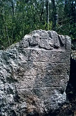 - ↑ Nikolai Grube: Hieroglyphic inscriptions from Northwest Yucatán, an update of recent research. In: Hanns J. Prem (Hrsg.): Escondido en la selva, arqueología en el norte de Yucatán. Instituto Nacional de Antropología e Historia, México, D. F. 2003, ISBN 970-35-0052-8, S. 339–370