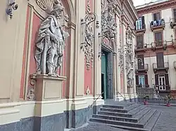 Die Kirche ist ein wertvolles Zeugnis des neapolitanischen Barock. Sie wurde im Vergleich zur Straße auf einem wesentlich höheren Niveau gebaut und ist über eine Treppe zu erreichen. Die Fassade hat eine vertikale Dreiergliederung und eine reiche und elegante Stuckdekoration. Das bronzene Portal wird von zwei Nischen mit Statuen flankiert. Über dem Portal und den Nischen befinden sich jeweils runde Medaillons mit Heiligenporträts, in der Mitte über der Tür die Titelheilige, die Heilige Teresa. Auf der zweiten und dritten Ebene der Fassade befinden sich kleine bekrönende Obelisken.