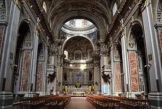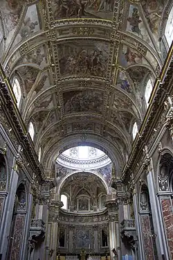 Die Bögen der Seitenkapellen wurden 1693 von Francesco Solimena freskiert, das Kuppelfresko mit dem Paradies malte 1680 Giovanni Battista Beinaschi, in den Zwickeln der Kuppel die vier Evangelisten von Lanfranco.[2] Der Stuckdekor stammt von Dionisio Lazzari.