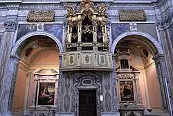 Die Dekoration aus polychromem Marmor in stammt aus dem 18. Jahrhundert und wird dominiert von Honig-, Grün und Grautönen. Sie wurde von Mario Gioffredo und Luigi Vanvitelli entworfen, und zwischen 1759 und 1767 von Antonio Di Lucca und Domenico Tucci ausgeführt.[5] Die holzgeschnitzten und vergoldeten Gitter wurden zwischen 1761 und 1765 von Giuseppe D’Ambrosio realisiert. An der Eingangsfassade stellte Giuseppe Simonelli 1700 den Durchzug durch das Rote Meer dar.[5] Von Vanvitelli stammen auch die Pläne zu den beiden großen Kapellen im Querhaus (1760–1762).