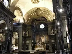 Das Kirchenschiff ist mit einem durch Querbögen getrennten Tonnengewölbe mit Lünetten bedeckt und wird durch große Fenster mit Rundbögen beleuchtet, während die beiden Arme des Querschiffs mit einem einfachen Tonnengewölbe bedeckt sind. Die Apsis wird von einem majestätischen Triumphbogen eingerahmt, auf dem sich das gemeißelte, vom Kreuz dominierte Theatiner Wappen befindet und von einer kleinen Kuppel bedeckt ist. An der Kreuzung zwischen dem Kirchenschiff und dem Querschiff befindet sich an der Decke das monumentale Wappen von Kardinal Carlo de’ Medici, ein Werk von Bastiano Pettirosso aus dem Jahr 1631.