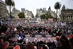 Der ungeklärte Tod Santiago Maldonados setzte die Regierung von Präsident Mauricio Macri unter Druck. Die Familie und Menschenrechtsorganisationen machten die Grenzpolizei für das Verschwinden des Aktivisten verantwortlich. Im September und Oktober 2017 wurden landesweit zahlreiche Solidaritätskundgebungen für Maldonado und gegen die Gewalt der Sicherheitsbehörden organisiert.[15] Mitte August 2017 demonstrierten zehntausende Menschen auf der Plaza de Mayo in Buenos Aires gegen Maldonados Verschwinden und machten die Regierung von Mauricio Macri dafür mitverantwortlich.[4] Die etwa 10.000 Demonstranten verlangten auch den Rücktritt der Ministerin Patricia Bullrich, die zu dem Zeitpunkt für die Polizei Argentiniens zuständig war. Die Demonstranten riefen: „Santiago wurde von der Polizei getötet.“[12]