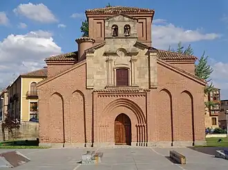 Die Kirche ist – mit Ausnahme des später hinzugefügten oberen Mittelteils der Westfassade – vollständig aus Ziegelsteinen errichtet. Die Techniken des Brennens und des dekorativen Vermauerns von Backsteinen waren im Norden der Iberischen Halbinsel zwar schon von den Römern verwendet worden, doch waren sie in der Folgezeit in Vergessenheit geraten, bis sie in den Jahren der Rückeroberung (reconquista) Andalusiens durch wandernde Handwerker wieder in den Norden vordrang. Vor allem in Toledo, später dann auch in Zamora, Toro und Sahagún entstanden bedeutende Kirchenbauten aus Ziegelsteinen im Mudéjar-Stil.