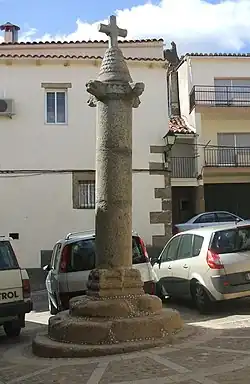 - Eine auf einem abgetreppten runden Sockel stehende Gerichtssäule (rollo oder picota) aus dem beginnenden 16. Jahrhunderts kann als Zeichen des Bürgerstolzes und der rechtlichen Eigenständigkeit des Ortes interpretiert werden.
