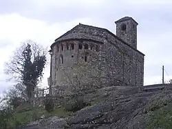 Das romanische Gebäude stammt aus dem 11. Jahrhundert. Der Glockenturm dient als Eingang; das ist eine Eigenart, welche auch andere romanische Kirchen in dem Gebiet aufweisen.